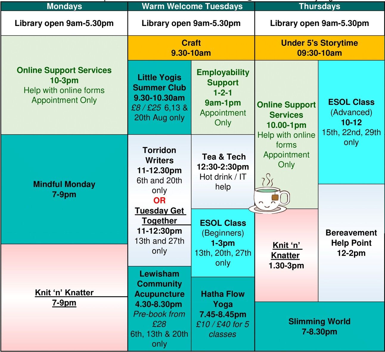 All our activities can be found on our website and on Lewisham Libraries Events Pages. We have sessions across the week to help you be your best self.