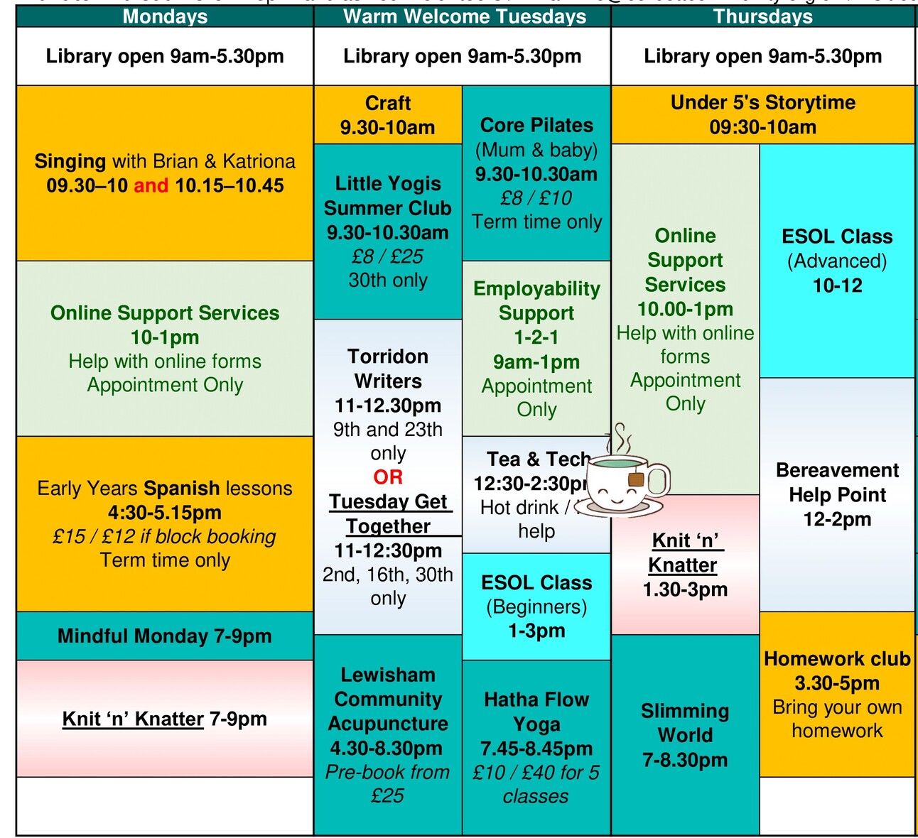 All our activities can be found on our website and on Lewisham Libraries Events Pages. We have sessions across the week to help you be your best self.