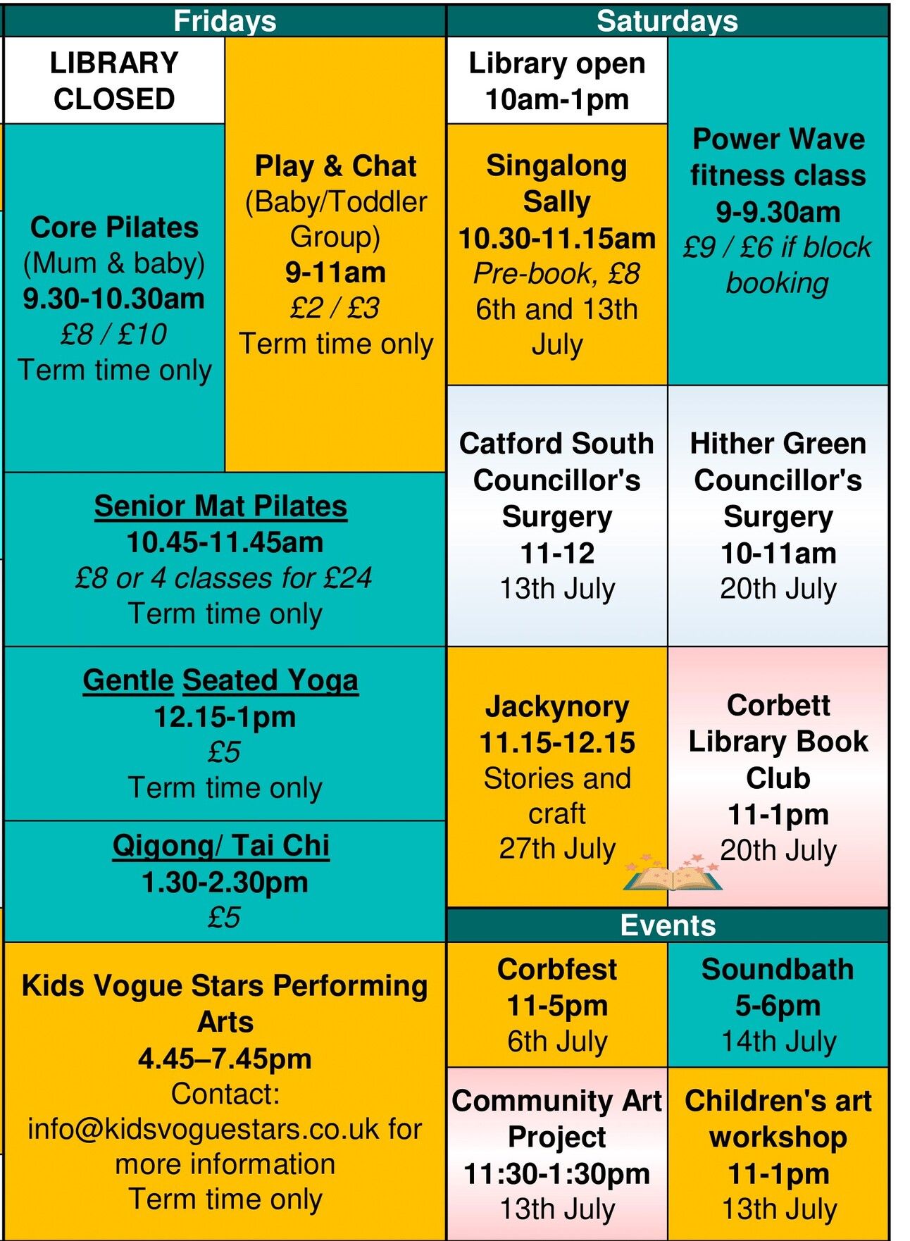 We are currently getting ready for our biggest community event of the year Corbfest! This is a chance for the whole community to come together and celebrate this lovely place and all the talent we host in Catford from performers, artists, gifted bakers, florists and bands! We really hope you will find the time to visit all three sites with the following line up…
