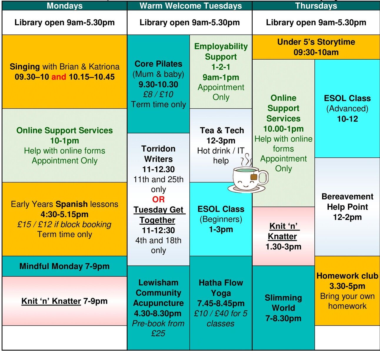 All our activities can be found on our website and on Lewisham Libraries Events Pages. We have sessions across the week to help you be your best self.