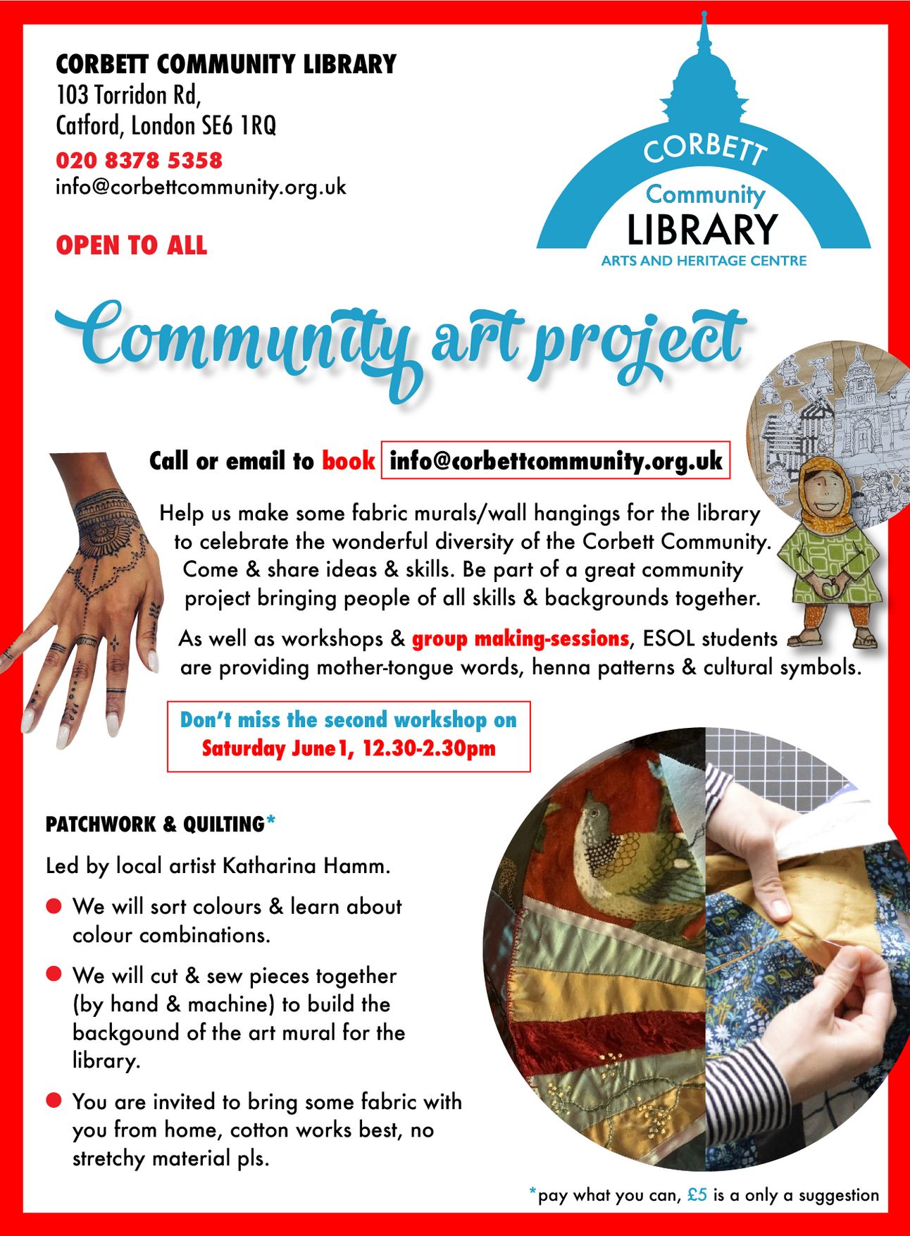 Corbfest (Arts and craft market with fun activities for all the family - a real celebration of the Corbett Estate and our community) Saturday 6th July 10:00 - 5:00pm - were looking for interesting stalls to bring this event alive! Plant stall? Food stalls? Live music outside? Something interactive or a bit different? We’d love to hear from you… [email protected]