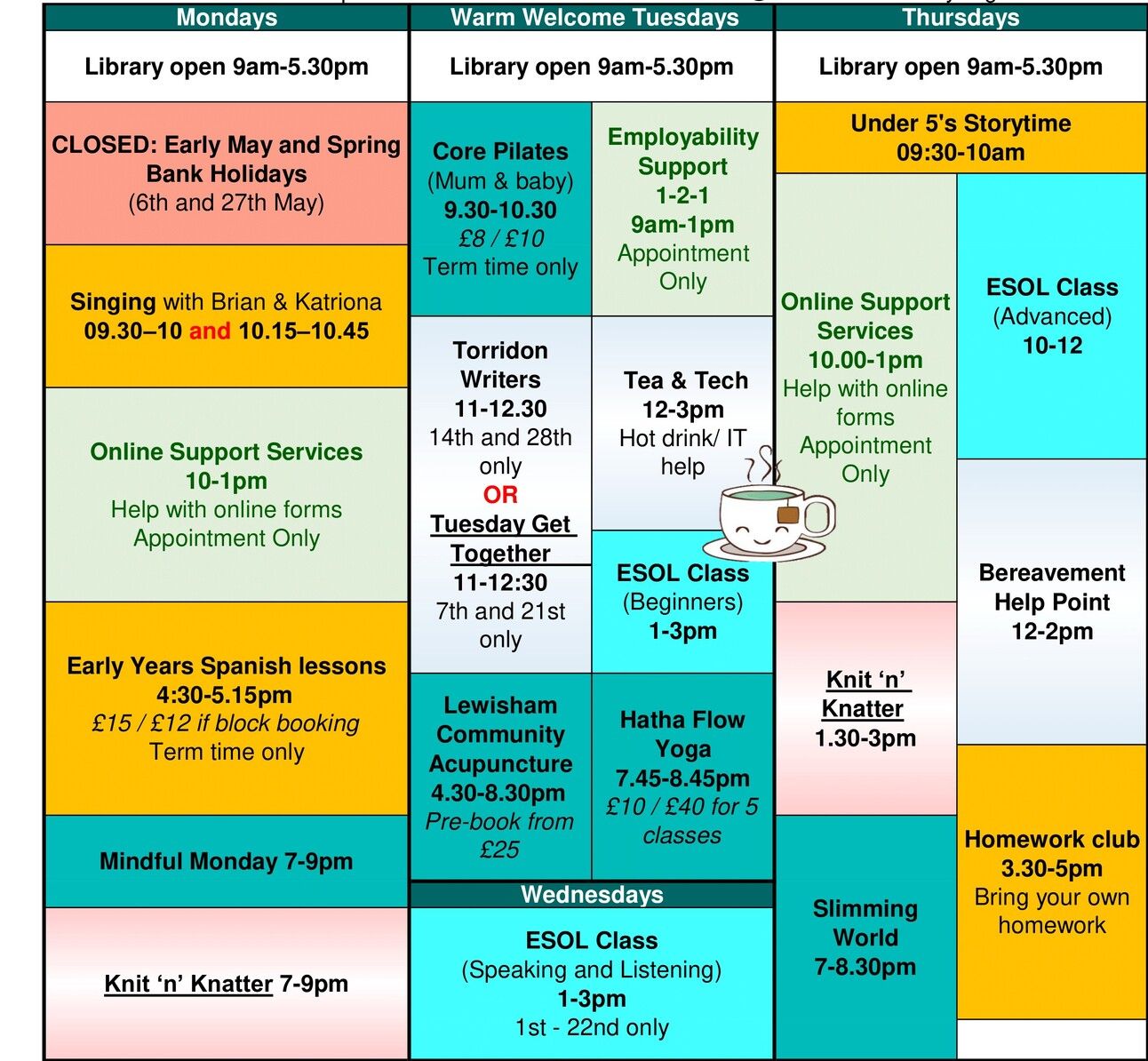 All our activities can be found on our website and on Lewisham Libraries Events Pages. We have sessions across the week to help you be your best self.